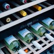 Equipped with adjustable leveling legs and front venting, it allows for flexible installation options to suit your outdoor setup. The roomy 5.3 cubic feet interior includes shelves that hold up to 46 bottles, split between two independently controlled temperature zones. The upper compartment cools between 41°F and 50°F—ideal for whites and sparkling wines—while the lower zone maintains 50°F to 64°F, perfect for red wines.